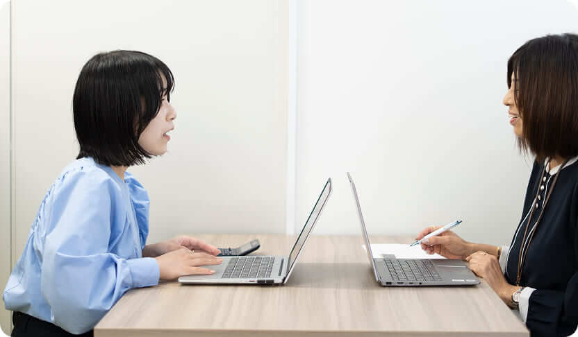この事務所では、パートも含めたスタッフ一人ひとりが、代表と年8回のペースで面談を行っています。そこで仕事上の悩みや希望、提案があれば、自由に打ち明けることができるので、ストレスを抱え込み過ぎずに、常に前向きに取り組むことができています。