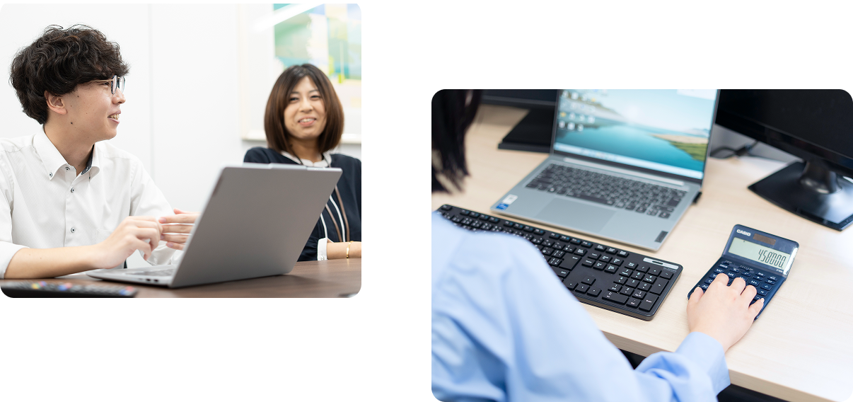 また労働基準法や社会保険制度、補助金・助成金に関するアドバイスを提供して健全経営と働きやすい職場づくりにも貢献。お客さまに並走し、ともに成長と成功を喜び合えるパートナーであり続けたいと考えています。